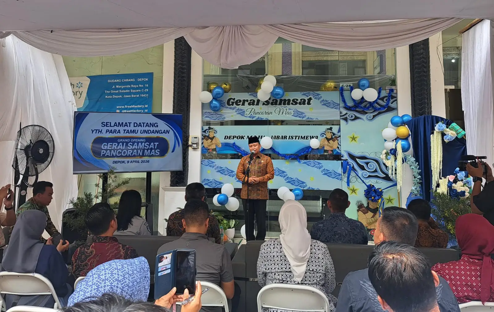 KOTA DEPOK — Wali Kota Depok, Supian Suri meresmikan gerai Samsat di kawasan Ruko Saladin, Jalan Margonda Raya, Kamis (10/04/26). Kehadiran fasilitas pelayanan ini diharapkan dapat mempermudah masyarakat dalam menunaikan kew...